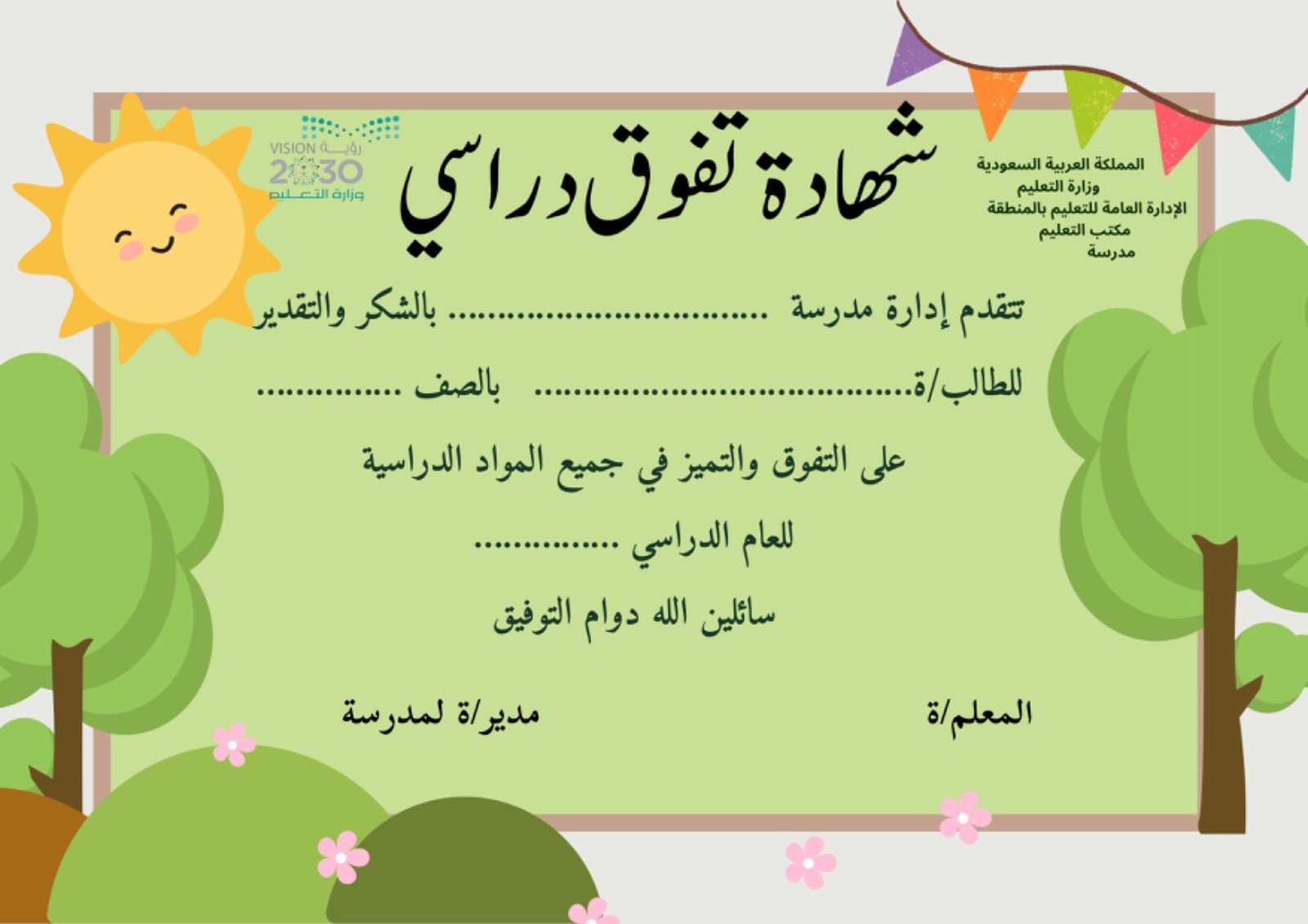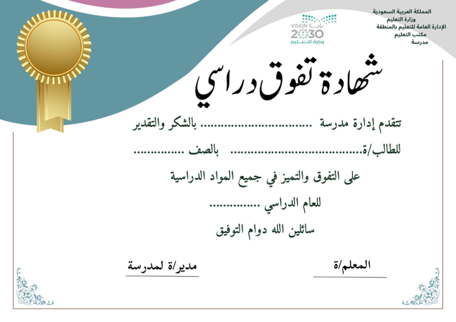 شهادة تفوق دراسي للطالبات نموذج2
